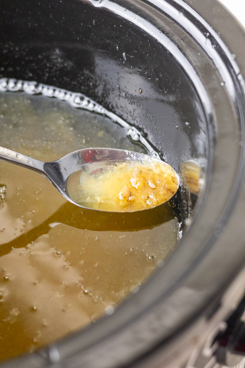 - Render low and slow – Continue cooking on LOW, stirring occasionally. Keep temperature around 200°F. A slight overshoot is okay—just stir to distribute heat.