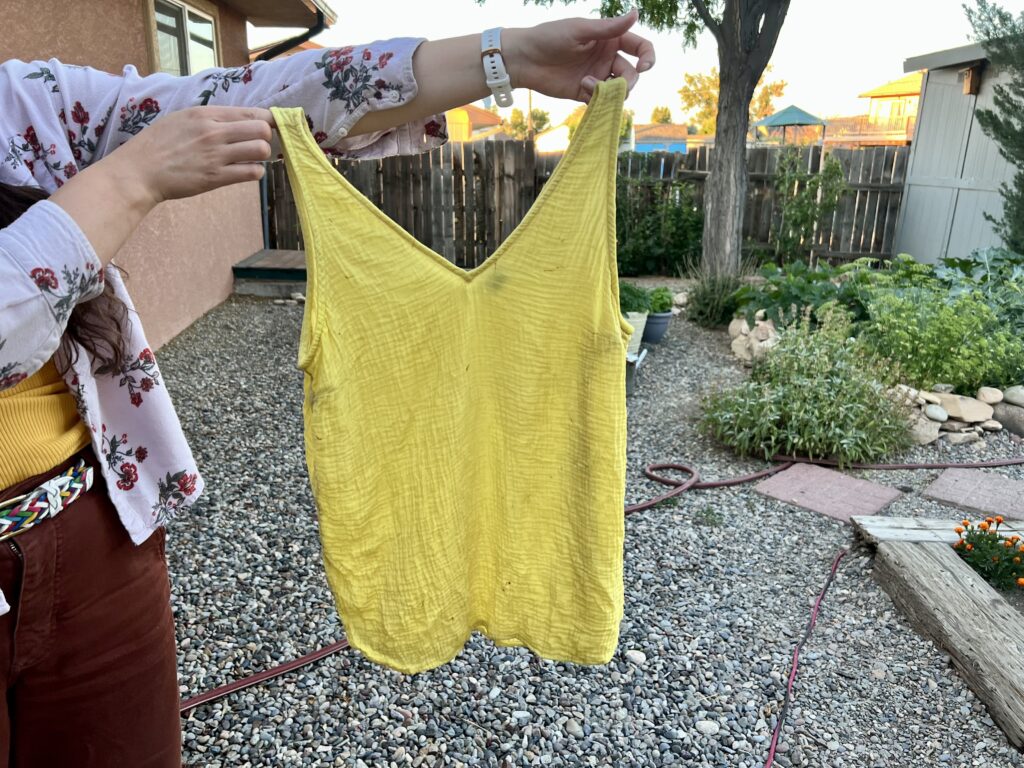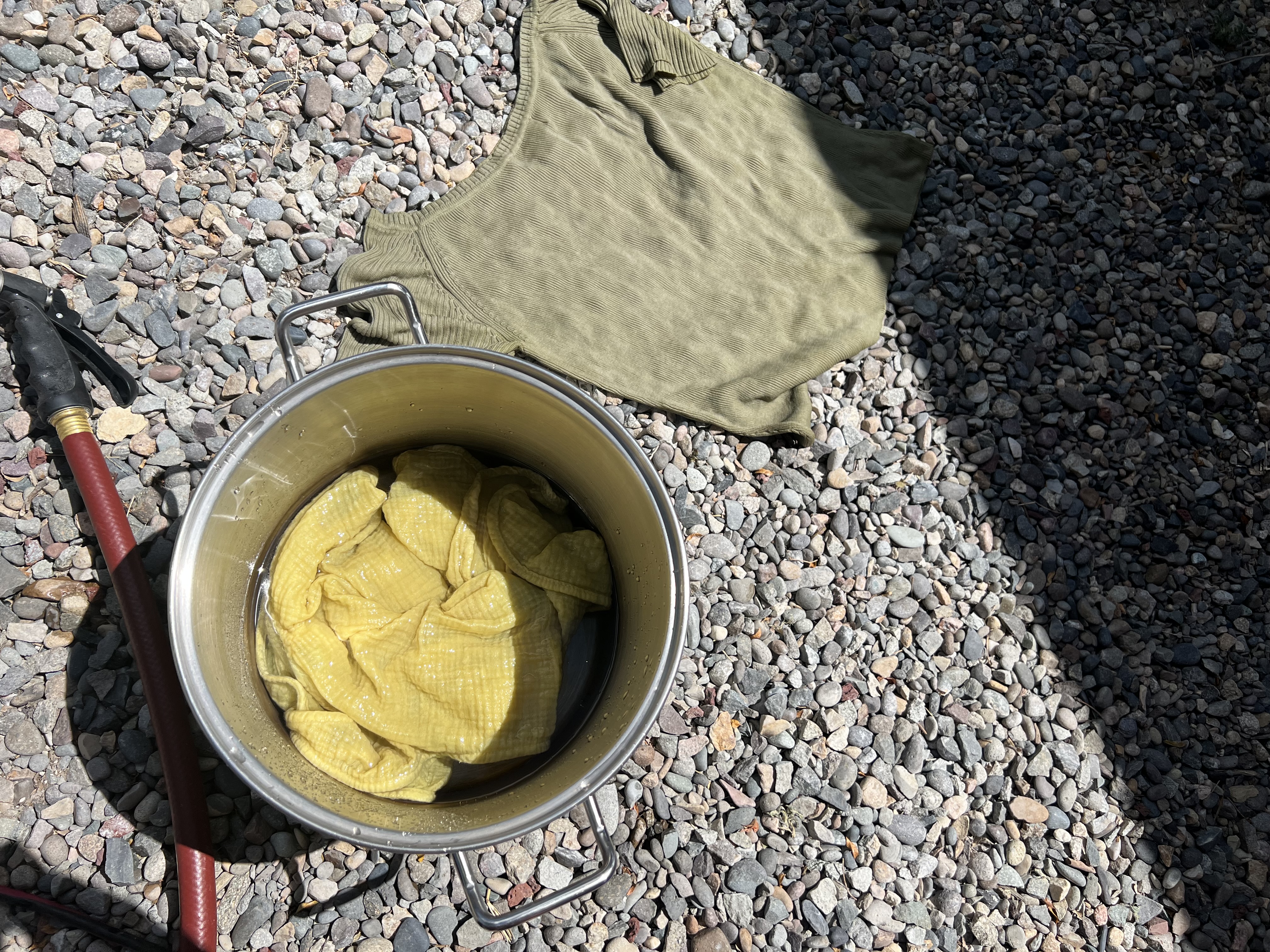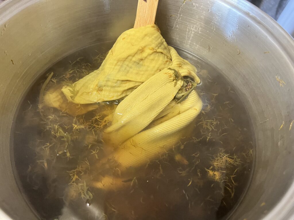 - If you opt for the All-In-One method and have dyestuff and fabric all in one pot, know that it will be very tedious to get all of the bits of dandelion off your fabric. Next time I will strain out the dyestuff before adding fabric.