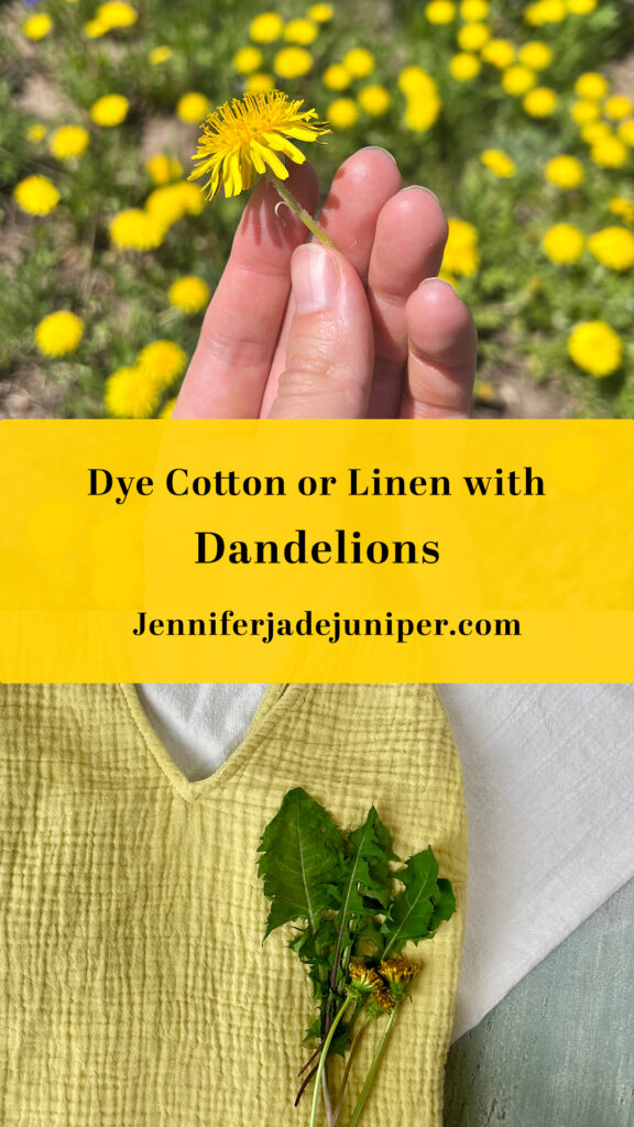 In this detailed tutorial, I will show you how to dye cotton or linen with dandelions! Almost everyone has access to enough dandelions to create a vibrant yellow.